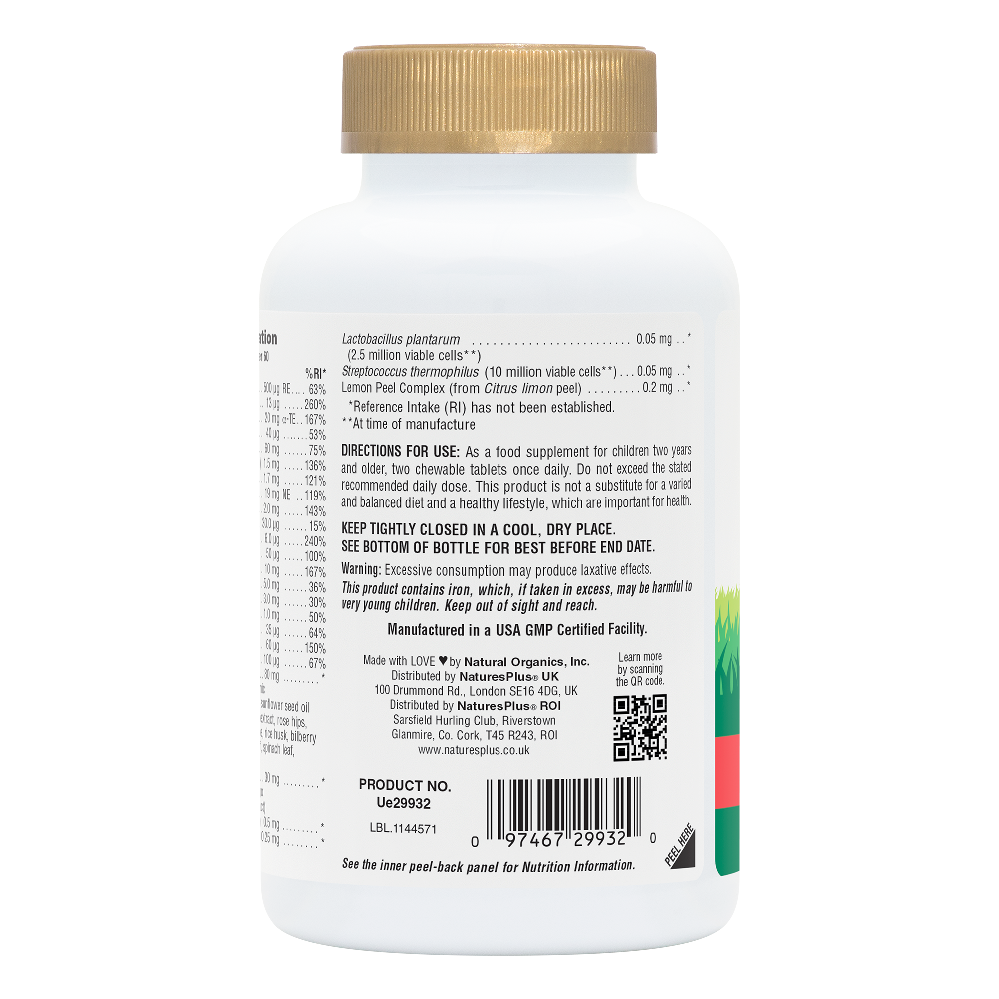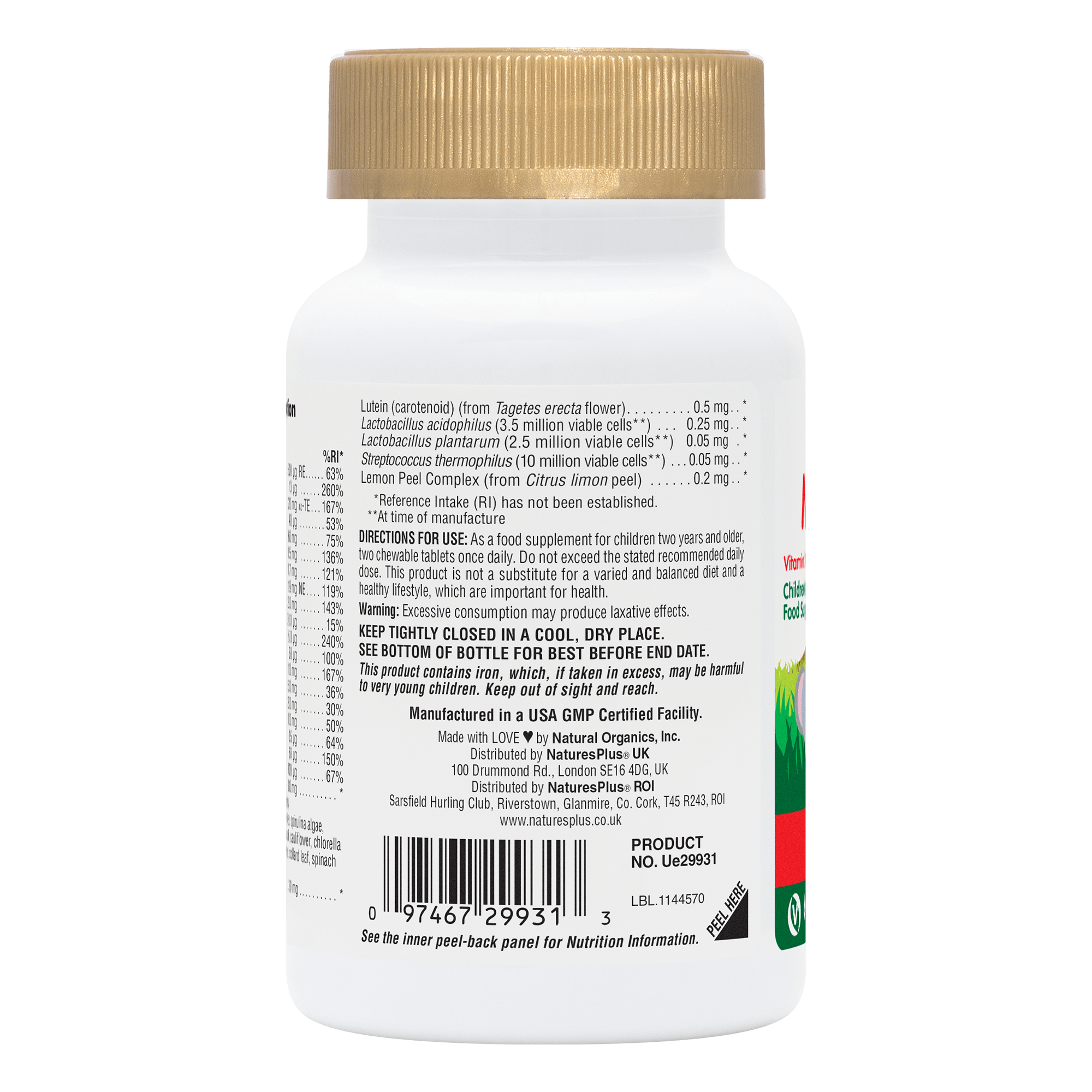 • A SPECIAL FORMULA FOR CHILDREN: Each chewable tablet supplies Vitamin D3 (500 IU), vitamin K2, trace minerals, enzymes, 20 organic whole foods and more in fun animal shapes with a taste that kids love.