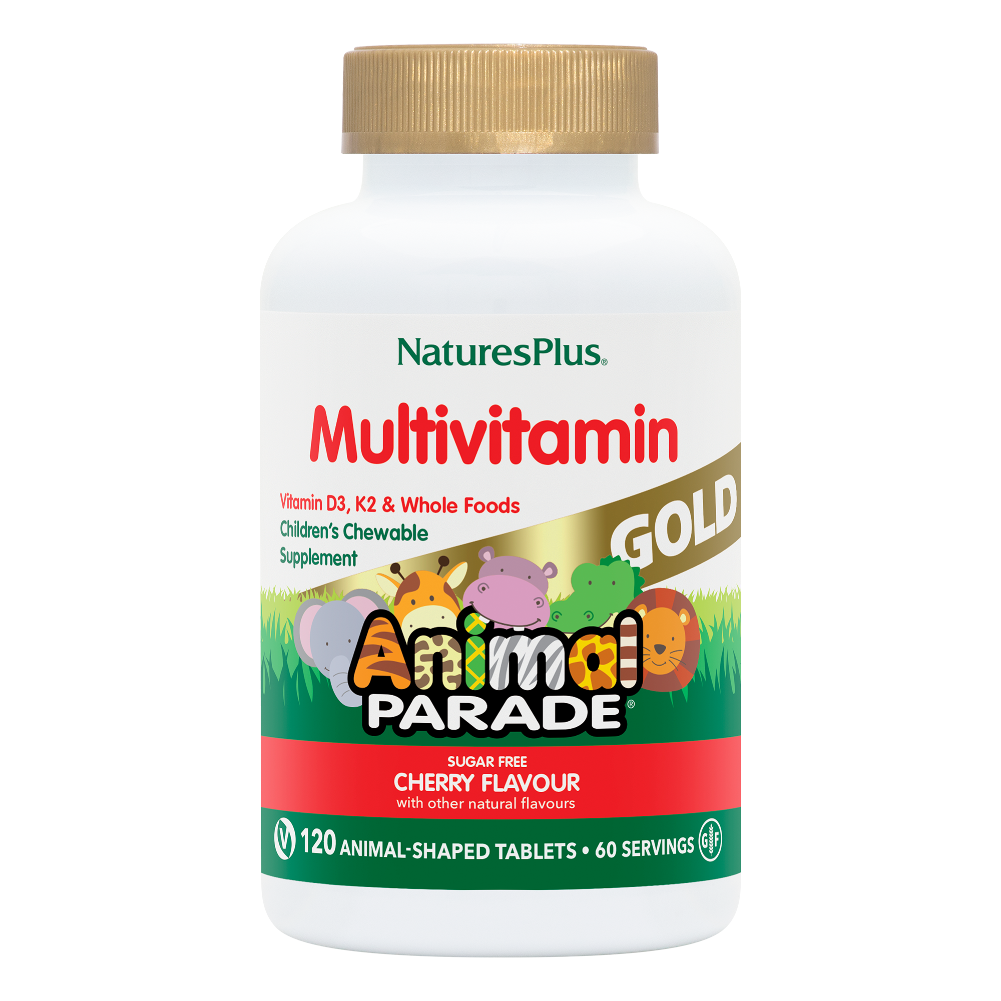Animal Parade Gold takes this best-selling multi-vitamin and -mineral formula to the next level. The award-winning taste continues in an irresistibly delicious sugar-free formula, bursting with natural flavours. Each serving of these fun, animal-shaped chewables is now packed with 500IU of vitamin D3, more trace minerals, enzymes and an extensive assortment of organic whole foods. Animal Parade GOLD is sweetened with xylitol, which has been shown to reduce dental plaque and contribute to the maintenance of tooth mineralisation.† The new gold standard in children's supplementation and with so many outstanding features is the most comprehensive, health-boosting investment a parent can make. Invest in GOLD—Animal Parade GOLD—for your children's future.