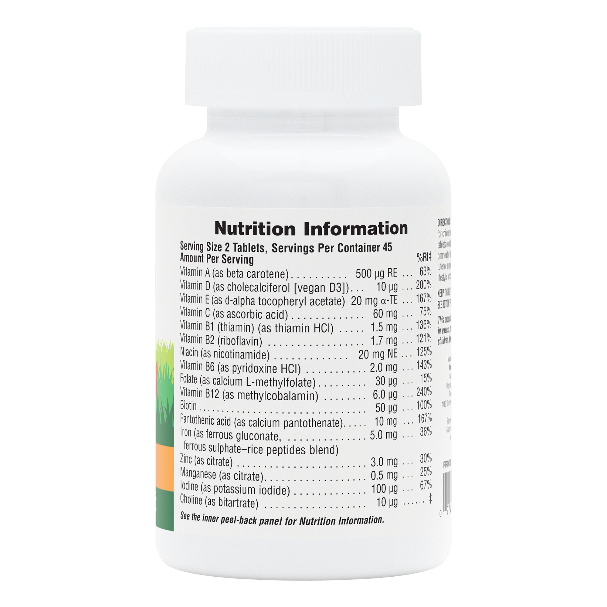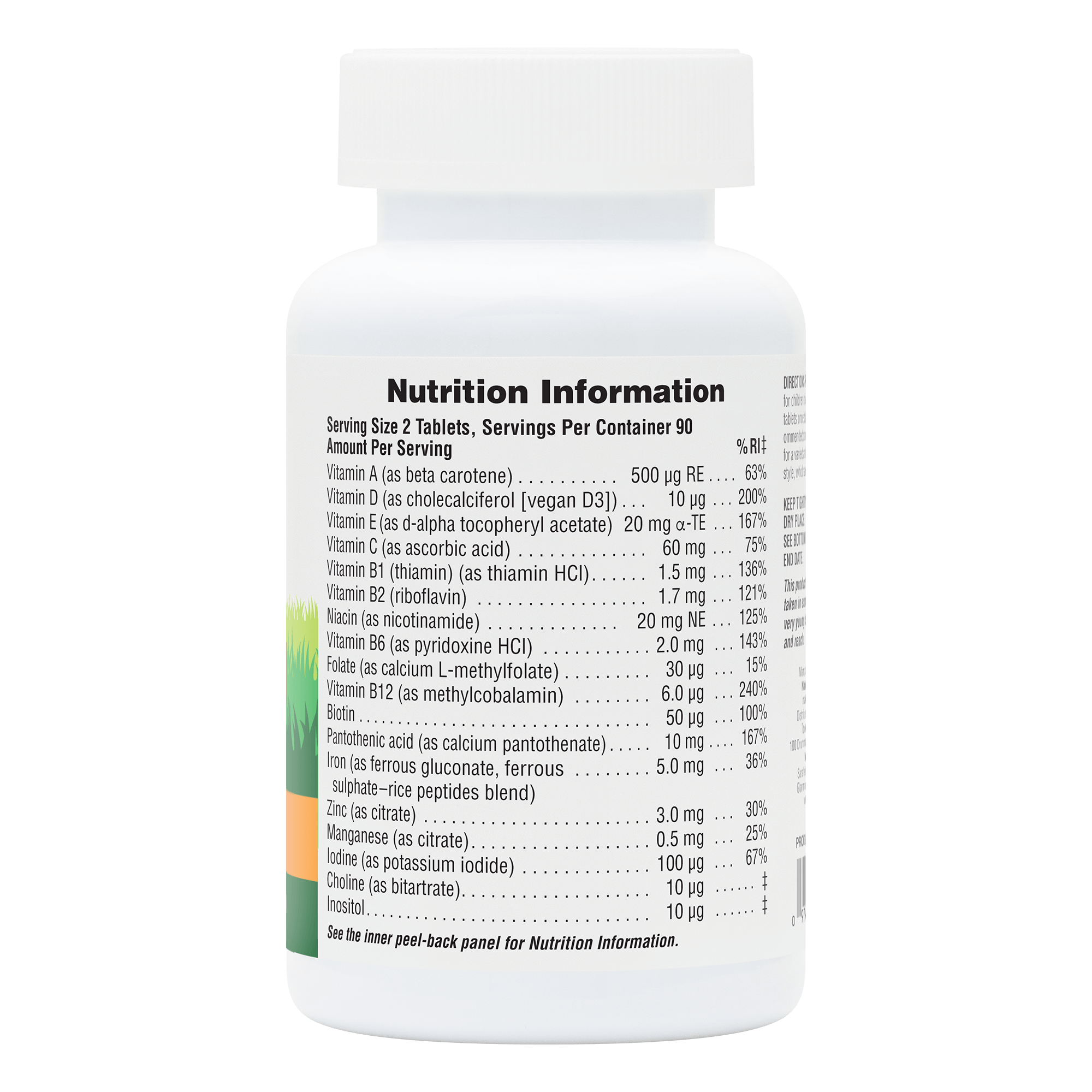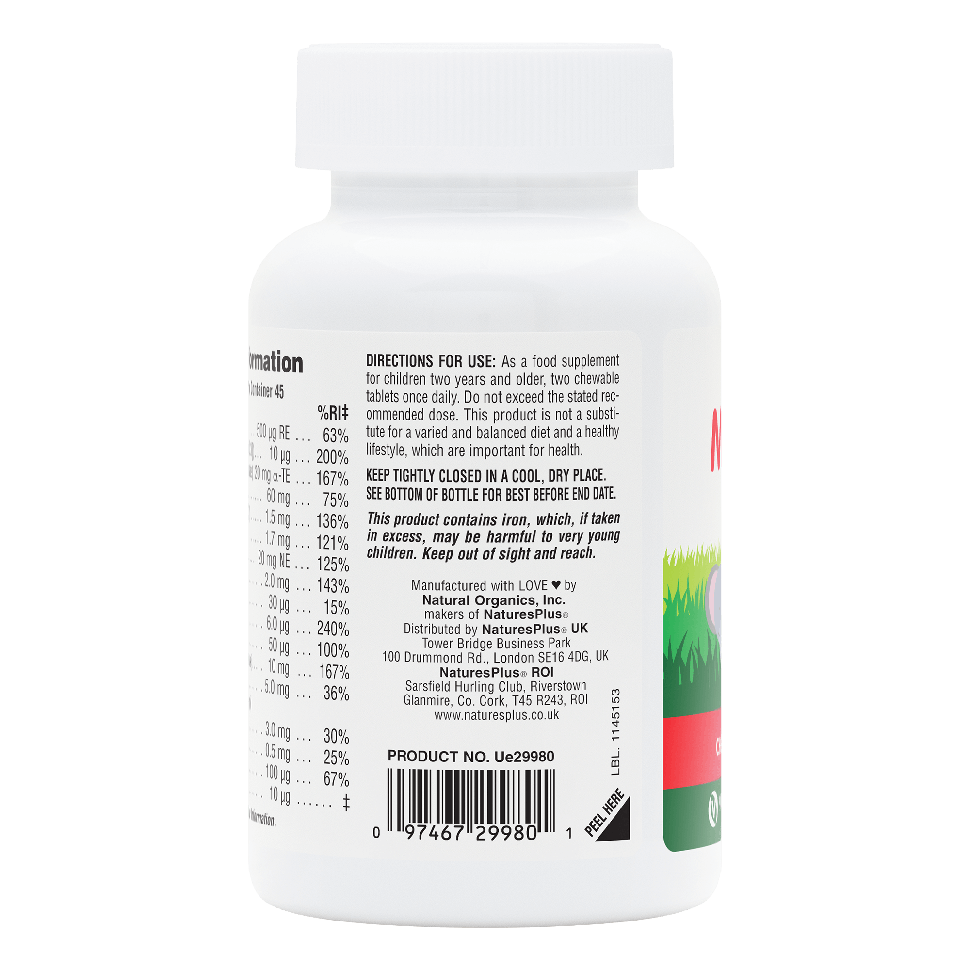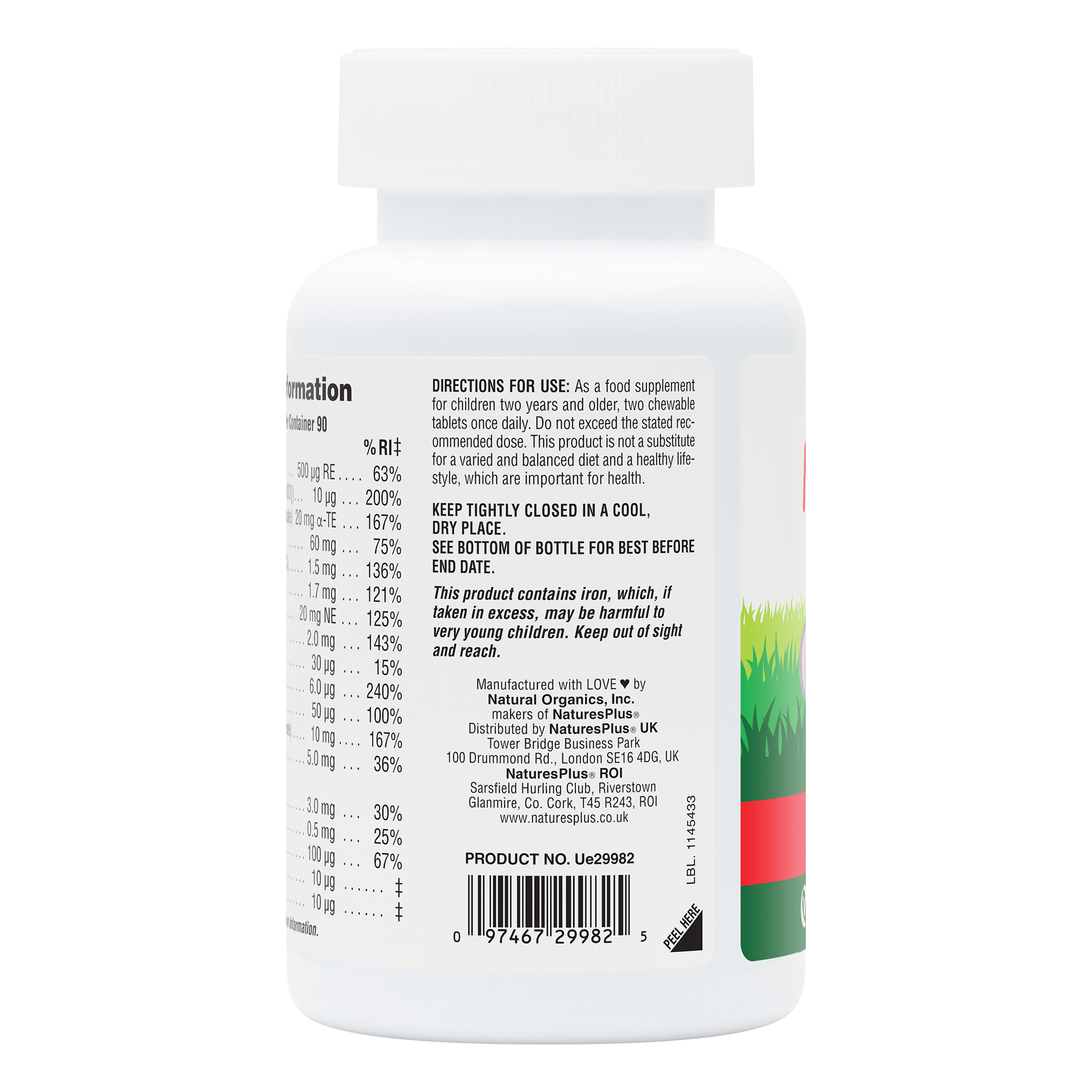 - A SPECIAL FORMULA FOR CHILDREN: Each chewable tablet supplies 16 vitamins, 8 minerals, and nature's most healthful whole foods, including spirulina, carrot, broccoli, whole brown rice, and spinach.