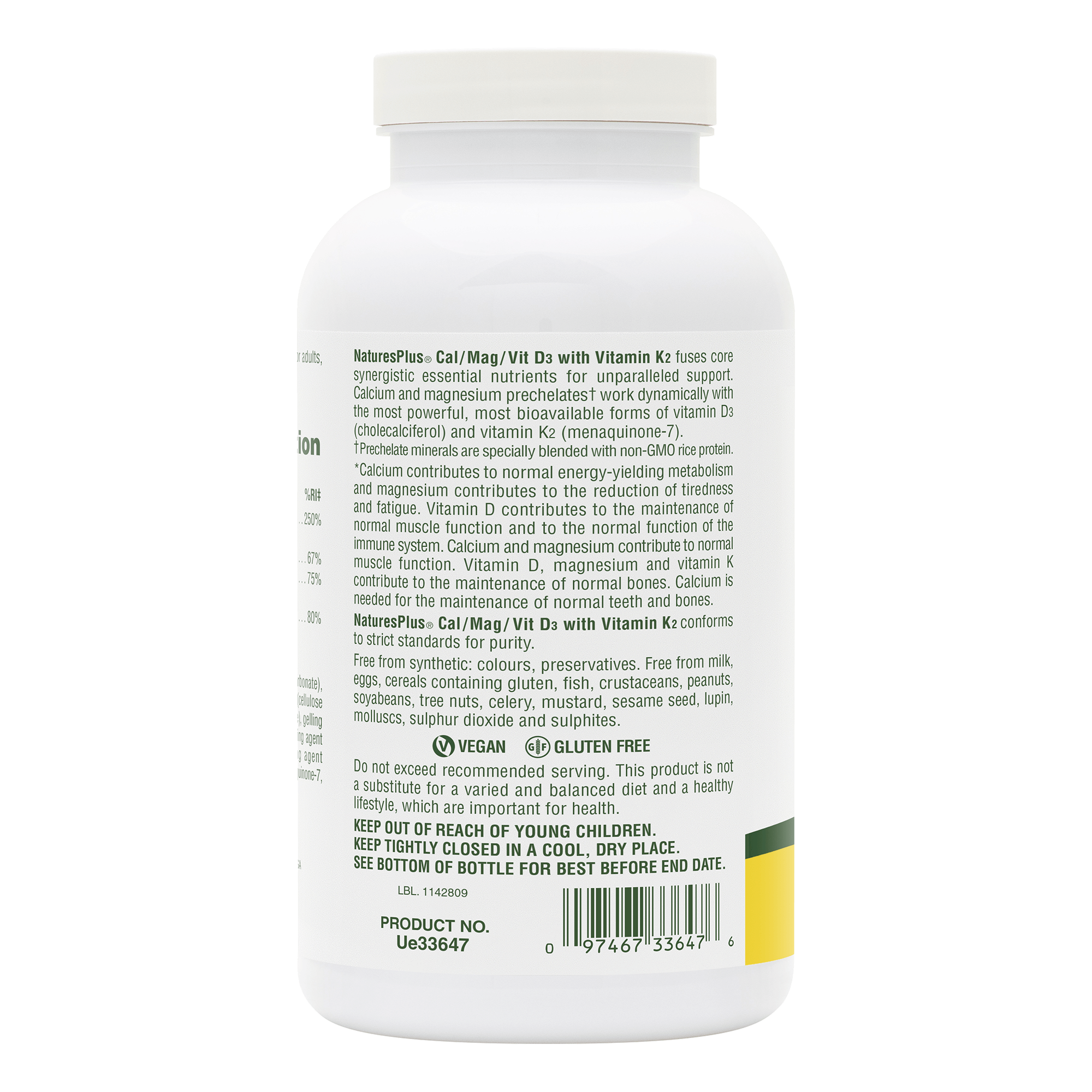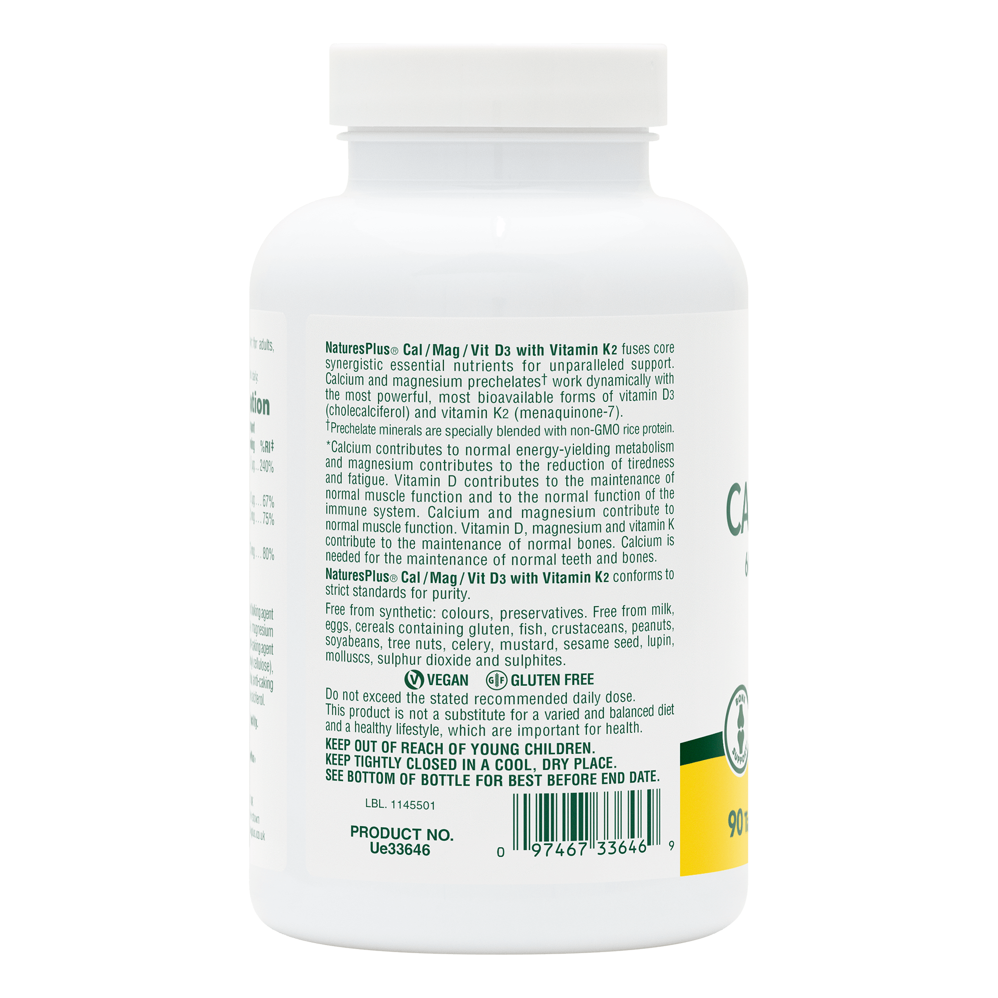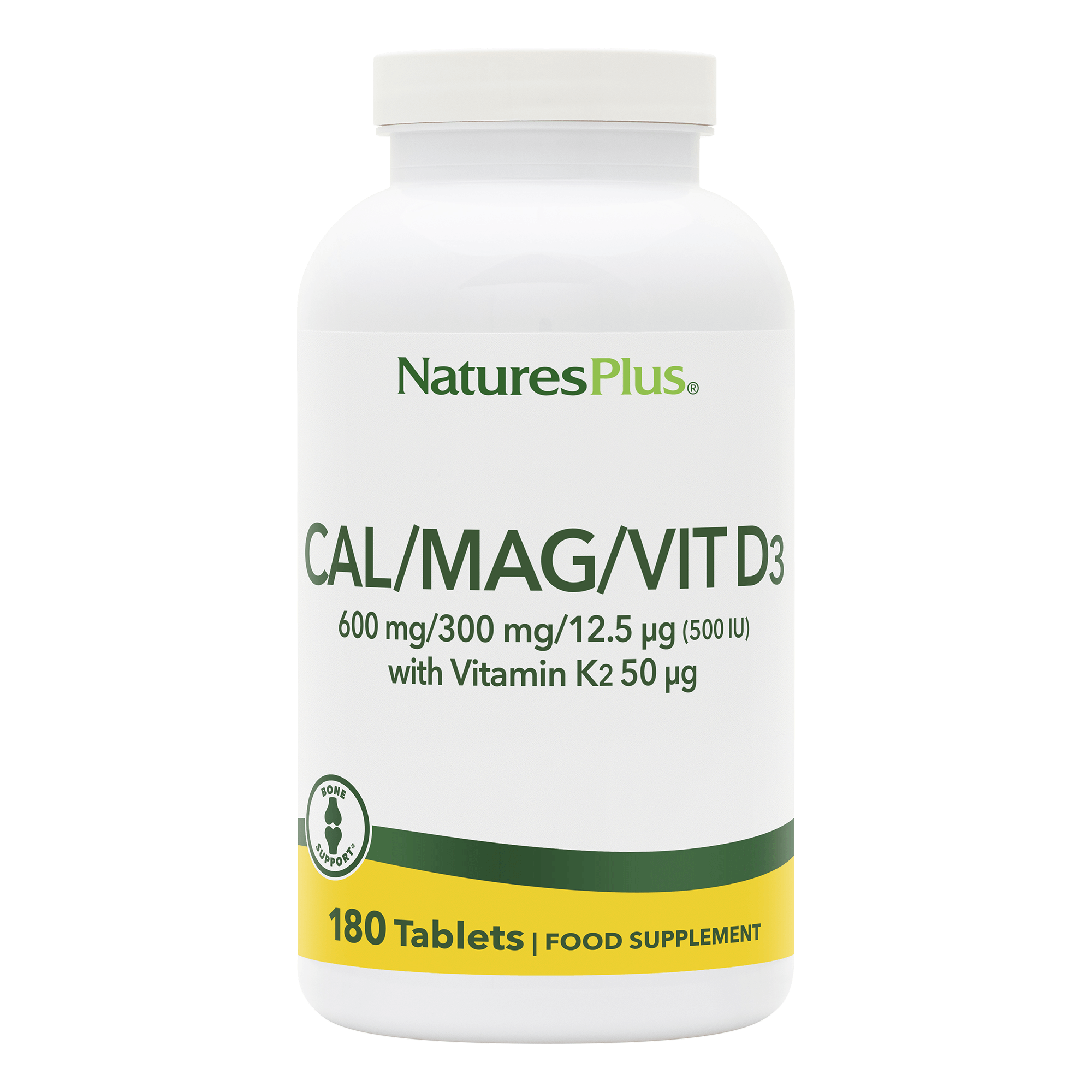 NaturesPlus Cal/Mag/Vit D3 with Vitamin K2 fuses core synergistic essential nutrients for unparalleled support for maintenance of normal bones.