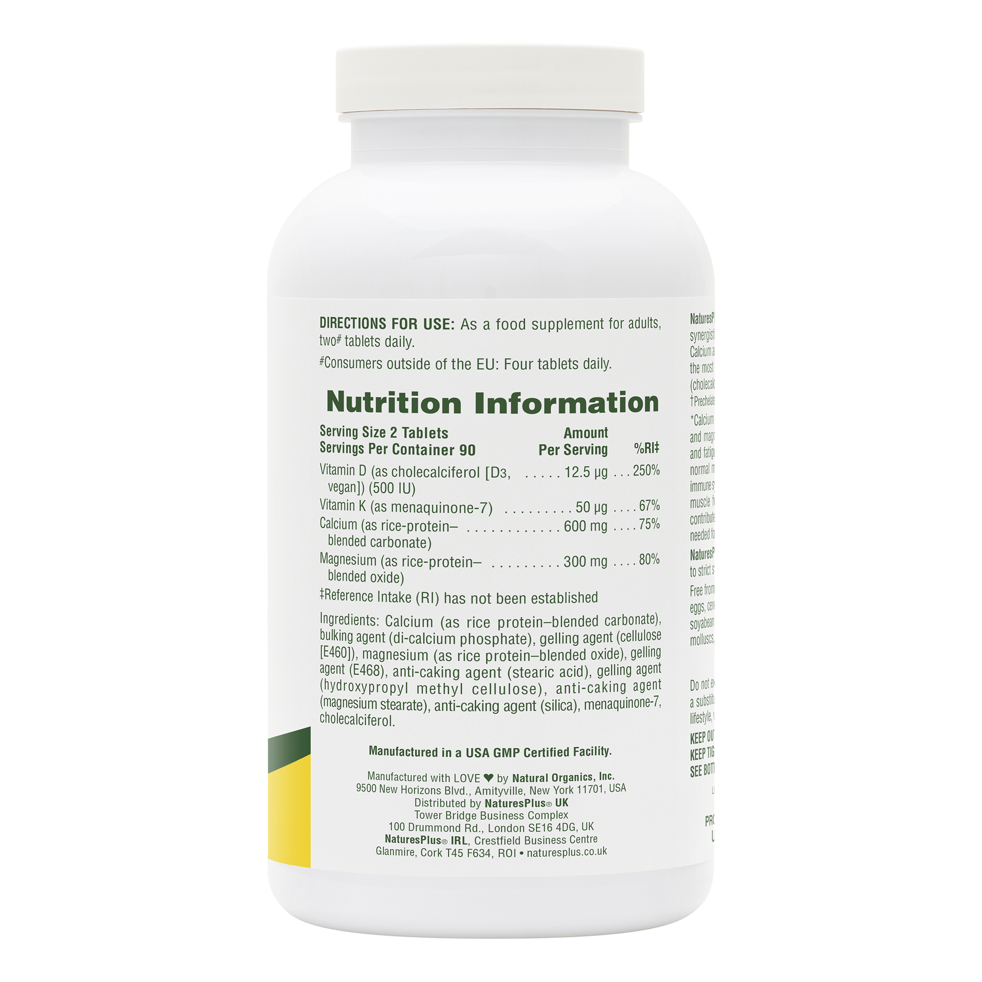 - HIGH POTENCY: NaturesPlus Cal/Mag/Vit D3 with Vitamin K2 is an advanced formulation, employing premium forms of calcium and magnesium combined with 500 IU of vitamin D3 and 50 mcg of K2.