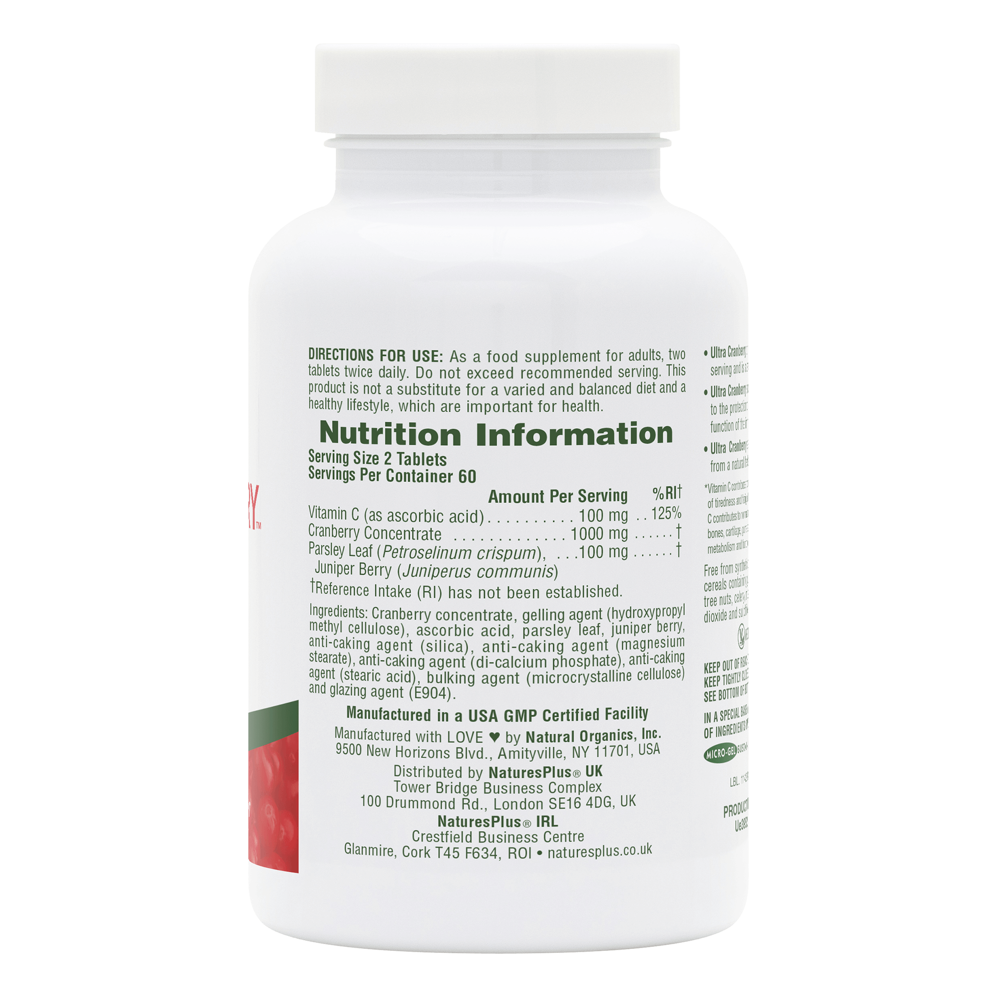 NaturesPlus - Ultra Cranberry 1000 is the highest quality cranberry supplements ever formulated. Just one sustained release tablet supplies an unprecedented 1000mg of pure cranberry juice solids. It has never been easier to attain the numerous benefits of this healthy berry.