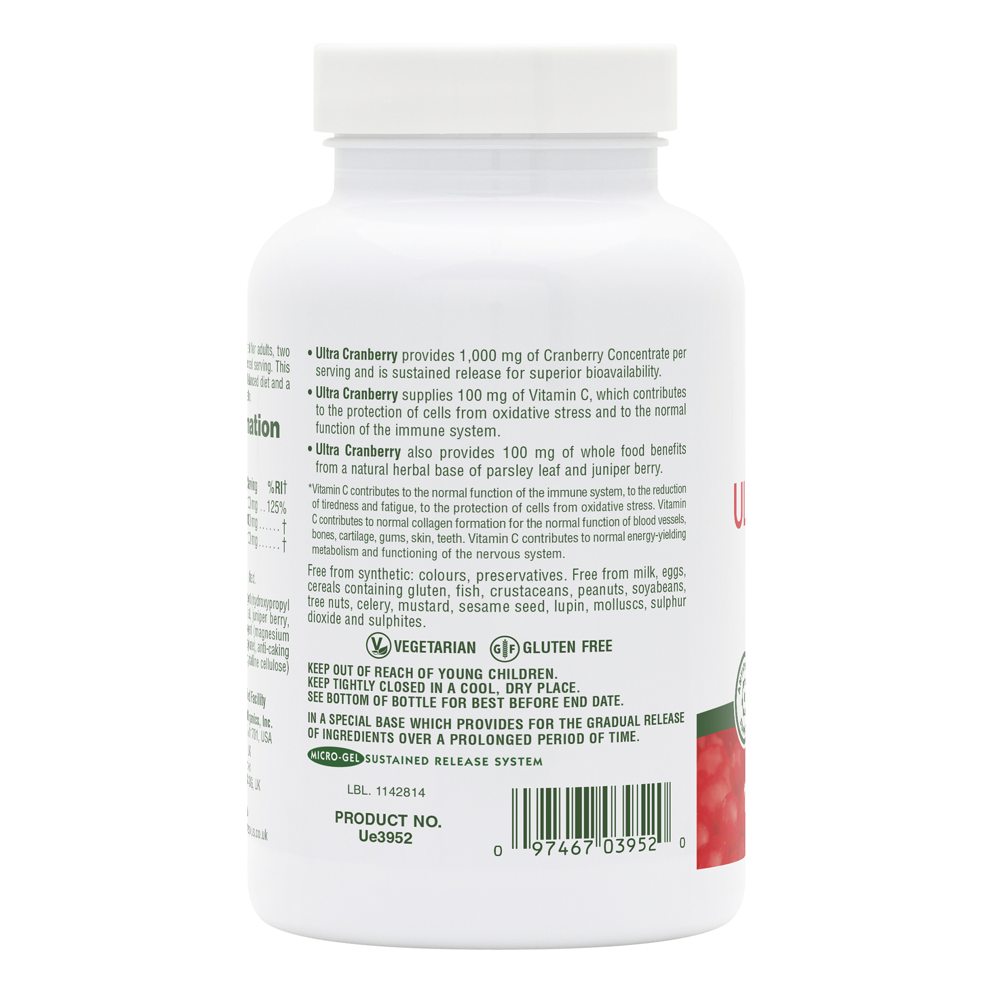 - NON GMO, TRULY NATURAL: Ultra Cranberry is vegetarian, gluten-free and free from artificial colours and preservatives. It's scientifically formulated with only non-genetically modified cranberries.